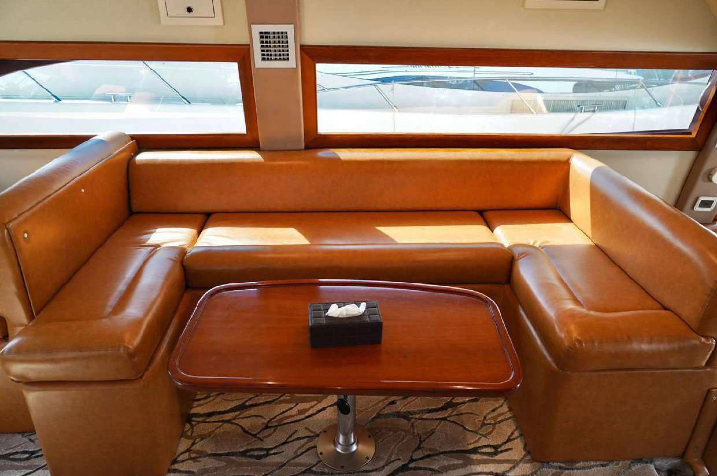 Step into the main salon, where modern design meets functionality. Plush furnishings, a panoramic ocean view, and an advanced entertainment system create the perfect ambiance for relaxation. Adjacent to the salon, a formal dining area sets the stage for gourmet meals prepared by the onboard chef.