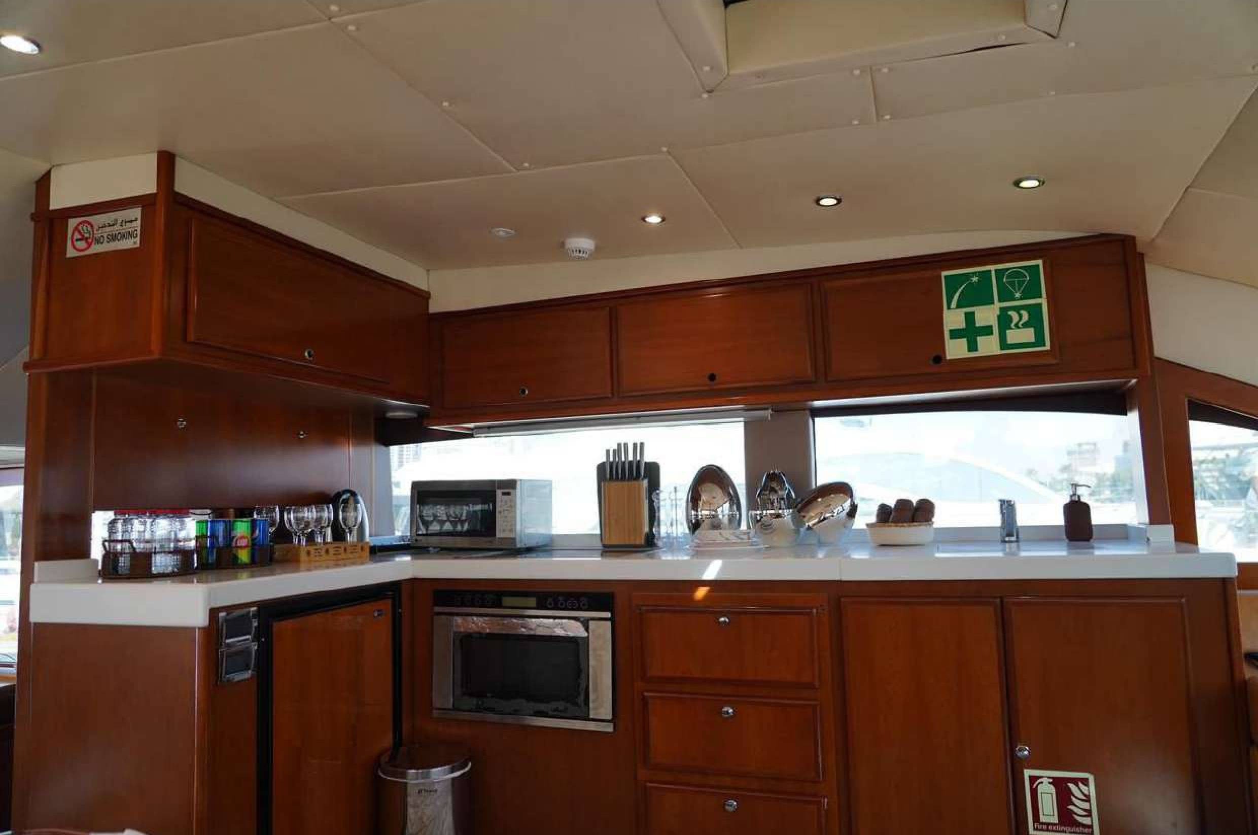 Below deck, the Al Shali offers a range of amenities to cater to every need, including a fully equipped gym for fitness enthusiasts. Powered by twin engines, it cruises comfortably at 18 knots, reaching a maximum speed of 24 knots. Advanced stabilizers ensure smooth sailing in all conditions.