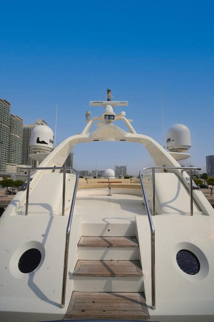 The flybridge is the ultimate space for entertaining, complete with a wet bar, lounge seating, and a Jacuzzi overlooking the horizon. For sun seekers, the foredeck boasts oversized sun pads and a private seating area, providing the perfect setting to enjoy the sun or take in the breathtaking views.