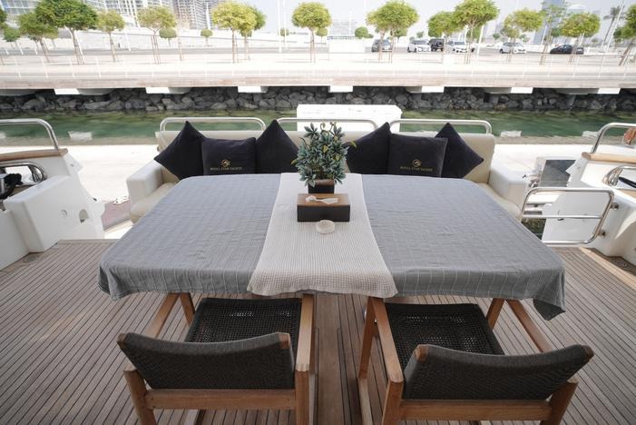For alfresco dining, the aft deck offers a spacious table for eight, allowing you to enjoy your meals surrounded by stunning views. Whether you're seeking relaxation or adventure, the Benetty is the perfect yacht for any occasion, providing an unforgettable cruising experience. Its versatility makes it ideal for long-distance journeys, ensuring your trip is both luxurious and memorable.