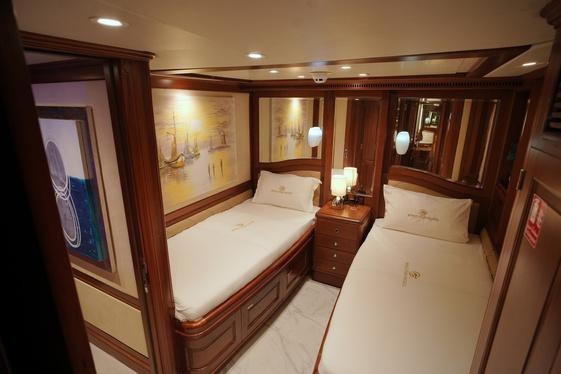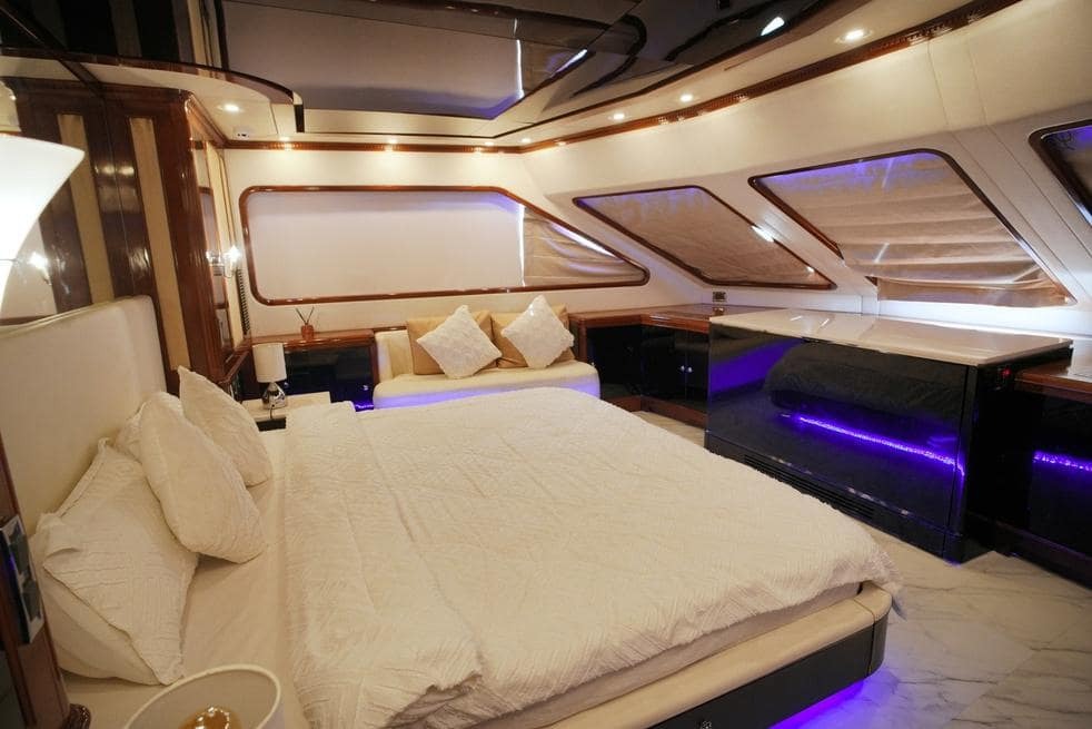 Below deck, the Benetty offers a fully equipped gym, allowing guests to stay active while cruising. The yacht is powered by twin engines, offering a cruising speed of 18 knots and a maximum speed of 24 knots. Its advanced stabilizers ensure smooth navigation, even in challenging conditions, providing a comfortable and seamless cruising experience.